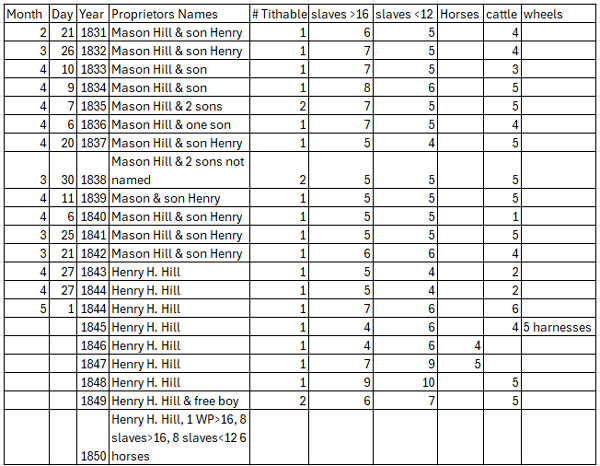 - William Hill is out on his own starting in 1803 through 1825. There are several occasions where he is also paying tax for a free Negro and for two in 1819.