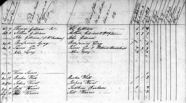 - William Hill is listed the first time in 1796 where he is listed as above age 16. That would imply he was born in 1780, three years after what we just finished calculating. The discrepancies may have something to do with the changing from 21 to 16 years or just bad collection of data.