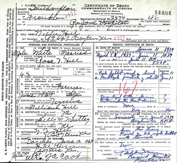 This appears to be the most logical person found on the 1950 census. There is no contradictory information. We know that in 1951 when brother William Wilson Hill died, he was listed in Newport News, VA.